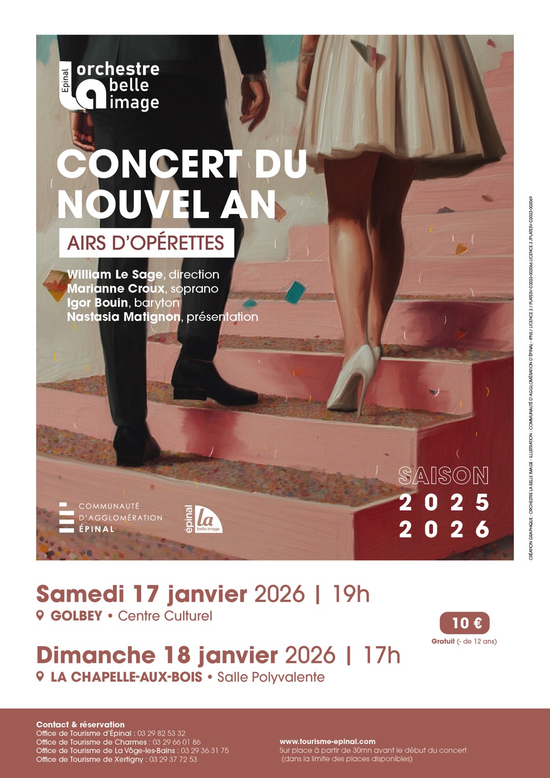 Le concert se tient le samedi 17 janvier 2026 à 19h au centre culturel de Golbey, puis le dimanche 18 janvier 2026 à 17h à la salle polyvalente de La Chapelle-aux-Bois.