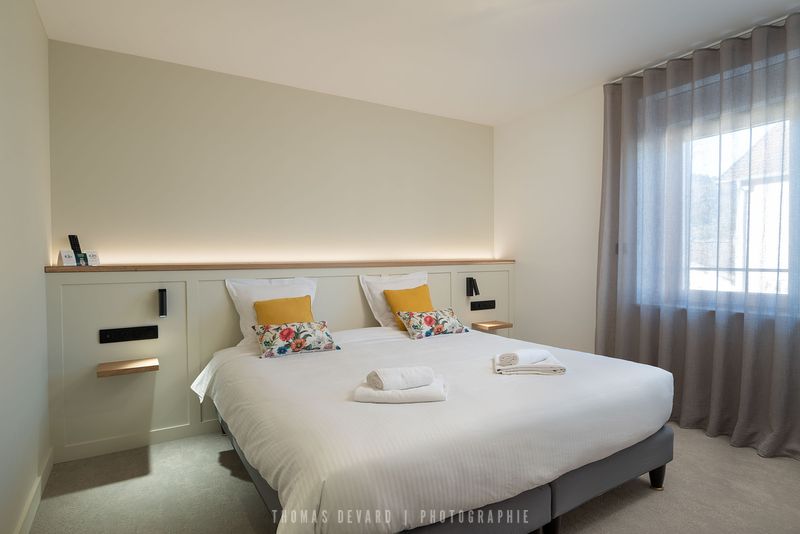 Établissement familial depuis trois générations, la maison poursuit son histoire avec la rénovation complète de l’Orangerie : un nouveau bâtiment qui accueille désormais 12 chambres et suites entièrement repensées. Après un an de travaux, menés entre septembre 2024 et août 2025 avec le savoir-faire d’entreprises locales, ces espaces dévoilent des ambiances variées, où le bois brut dialogue avec une élégance contemporaine.