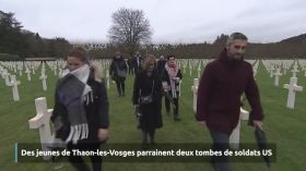 Quatre adolescents du Conseil Municipal des Jeunes de Thaon-les-Vosges ont parrainé samedi matin au cimetière américain du Quéquement à Dinozé deux tombes de soldats : Stanley W. Watkins et James M. Jr Hutton, tués en septembre 1944 durant la Seconde Guerre mondiale.