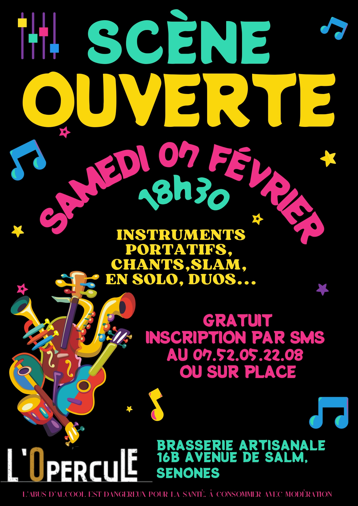La soirée se déroule à la brasserie artisanale située 16B avenue de Salm à Senones. L’entrée est gratuite pour le public comme pour les artistes. L’abus d’alcool est dangereux pour la santé et doit se consommer avec modération.