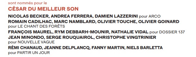 Alors que de nombreux films se retrouvaient en lice pour les différentes catégories, le documentaire de 1h33 s'est vu nominé au sein de deux d'entre elles ce mercredi 28 janvier : celle du meilleur film documentaire, face à 4 concurrents, mais également pour le César du meilleur son en face de 4 autres oeuvres. Une prestation déjà saluée par l'Académie des Lumières qui a décerné un prix pour la musique du film il y a quelques jours.
