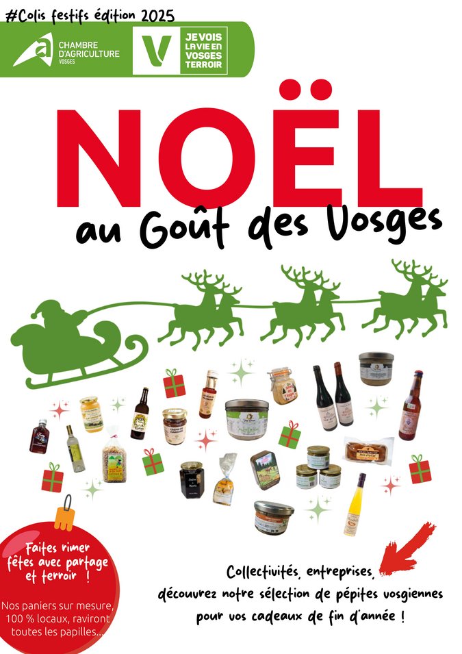 Offrez un Noël local avec les paniers festifs 2025 et soutenez les producteurs vosgiens grâce à des cadeaux gourmands et personnalisables.