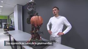 Six oeuvres présentées par les élèves-apprentis du CFA d'Epinal  sont en lice dans le cadre du concours des oeuvres gourmandes organisé par le Rotary Club pour le salon de la gourmandise qui se tiendra ce week-end au centre des congrès. Et parmi ces oeuvres, celle de la jeune Louise, 18 ans, en deuxième année de CAP de chocolatier-confiseur qui a choisi de réaliser suivant le thème imposé d'Halloween, une pièce représentant l'étrange Noël de monsieur Jack.