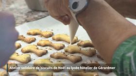 Ce mardi à Gérardmer, un atelier de confection de biscuits de Noël était proposé par la marque alsacienne Carola, en partenariat avec le lycée hôtelier JBS Chardin et des chefs du groupement hôtelier gérômois, au bénéfice du Secours Populaire des Vosges.