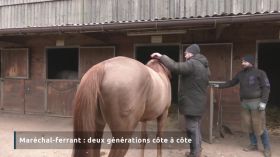 C’est l’histoire d’une passion commune pour les chevaux mais également d’une transmission d’un métier ancestral, celui de maréchal-ferrant : Pascal est autodidacte depuis un demi-siècle et Thomas, cavalier au départ, s’est formé en école pendant 5 ans et exerce depuis 10 ans. Ce jour-là, deux générations travaillent de concert à l’écurie des Sagards à Raon-l’Étape. Le savoir-faire : le ferrage sur mesure s’apprend avec l’expérience, mais c'est aussi une profession où les techniques évoluent.