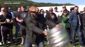 Première édition du "Championnat des Vosges de lancer de fûts de bière" à Bettoncourt, près de Mirecourt. Objectif : lancer le plus loin possible un fût en aluminium réformé de 10 kilos. Un bon moyen de faire rayonner cette petite commune d'une centaine d'habitants.